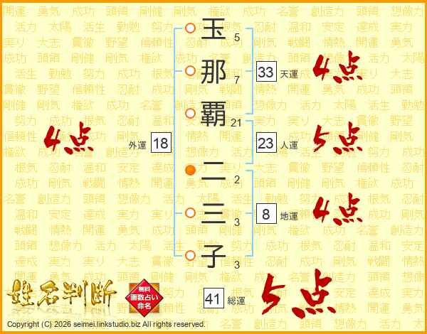 玉那覇二三子さんの天運は33画の4点!