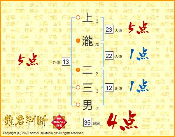 上瀧二三男さんの総運は35画の4点!
