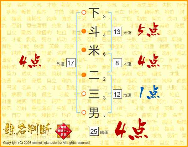下斗米二三男さんの天運は13画の5点!