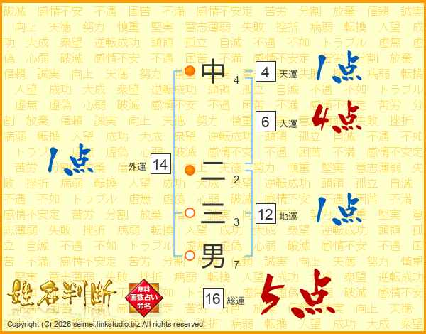 中二三男さんの総運は16画の5点!