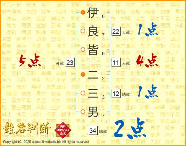 伊良皆二三男さんの総運は34画の2点!