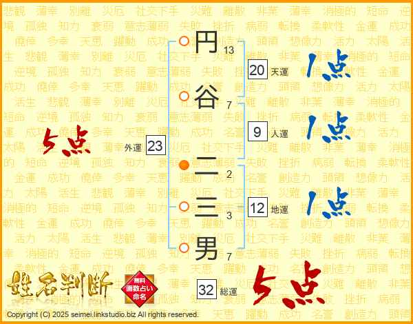 円谷二三男さんの総運は32画の5点!