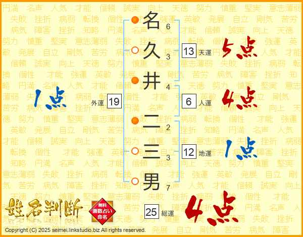 名久井二三男さんの天運は13画の5点!