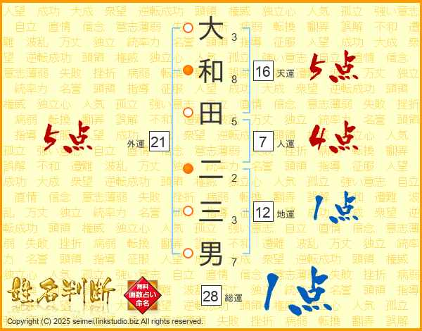大和田二三男さんの総運は28画の1点!