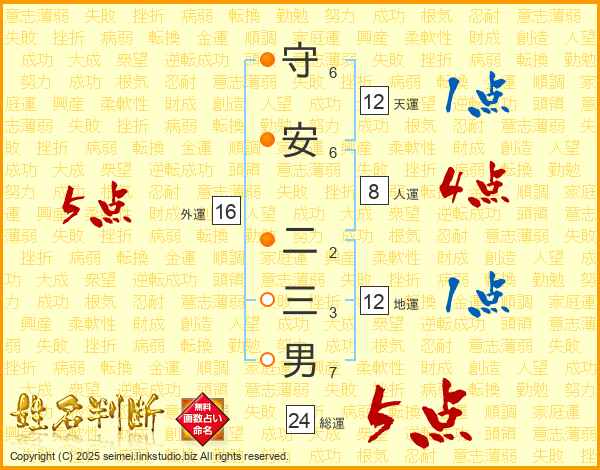 守(6画)安(6画) 二(2画)三(3画)男(7画)
