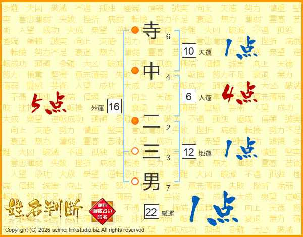 寺中二三男さんの総運は22画の1点!