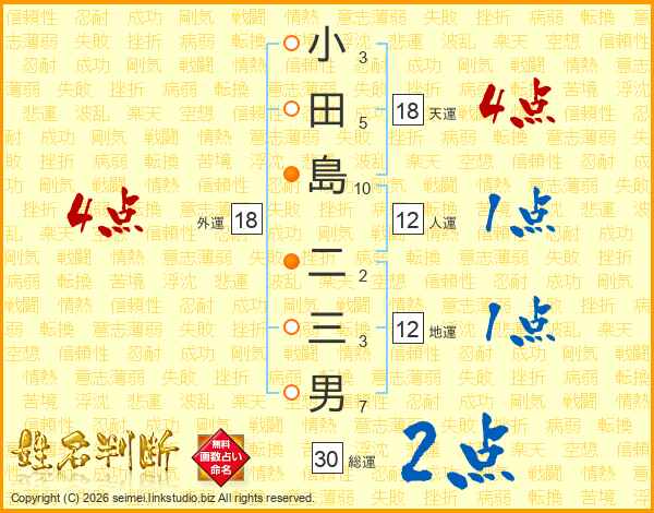 小(3画)田(5画)島(10画) 二(2画)三(3画)男(7画)