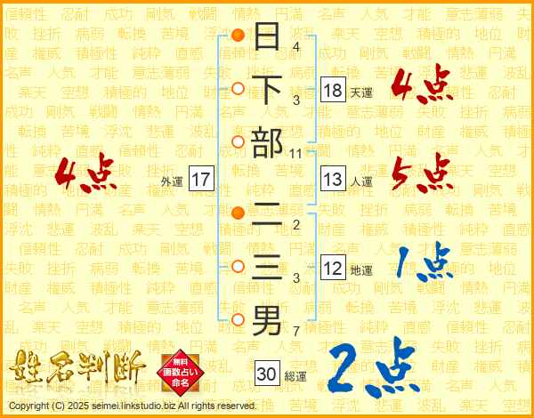 日(4画)下(3画)部(11画) 二(2画)三(3画)男(7画)