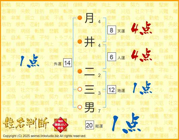 月(4画)井(4画) 二(2画)三(3画)男(7画)