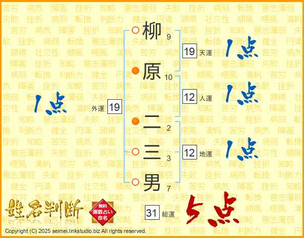 柳原二三男さんの総運は31画の5点!