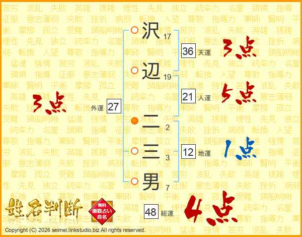 沢辺二三男さんの総運は48画の4点!