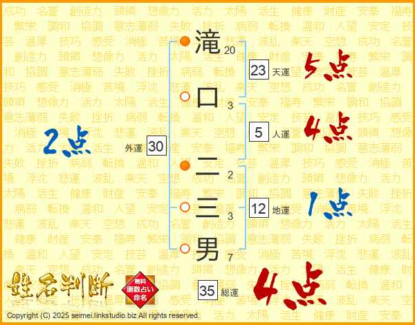 滝口二三男さんの総運は35画の4点!