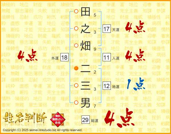 田之畑二三男さんの総運は29画の4点!