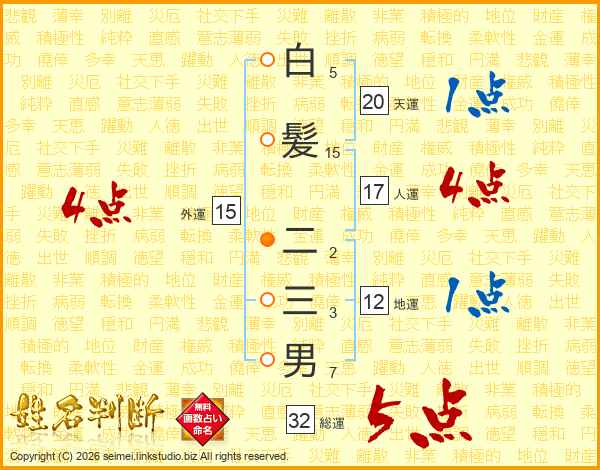 白髪二三男さんの総運は32画の5点!