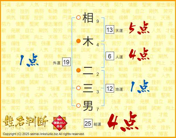 相木二三男さんの天運は13画の5点!