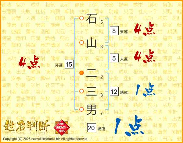 石山二三男さんの人運は5画の4点!