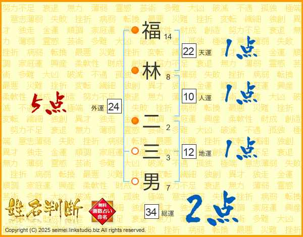 福(14画)林(8画) 二(2画)三(3画)男(7画)