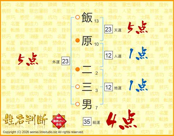 飯(13画)原(10画) 二(2画)三(3画)男(7画)