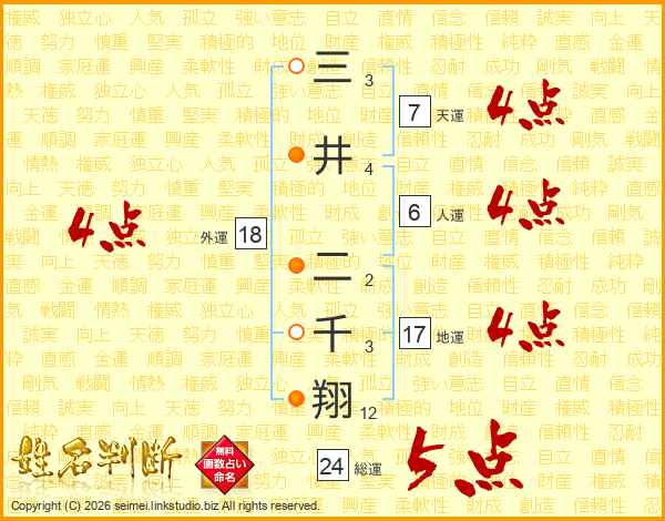 三(3画)井(4画) 二(2画)千(3画)翔(12画)