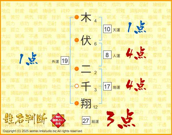木伏二千翔さんの総運は27画の3点!