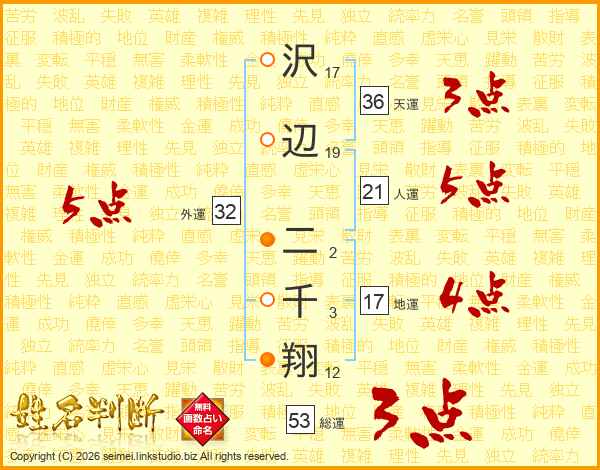 沢辺二千翔さんの総運は53画の3点!