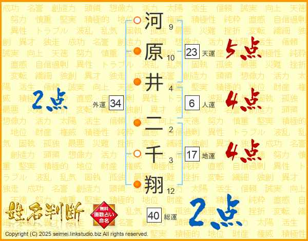 河原井二千翔さんの総運は40画の2点!