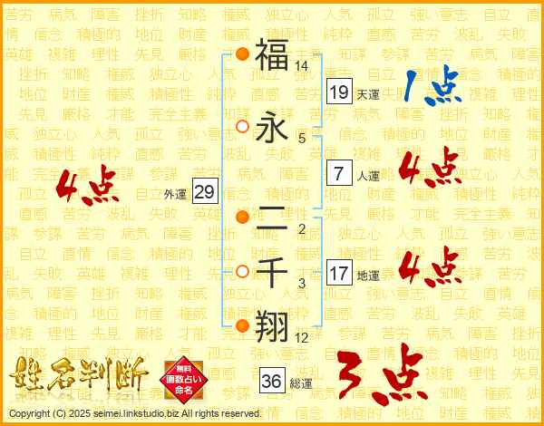 福(14画)永(5画) 二(2画)千(3画)翔(12画)