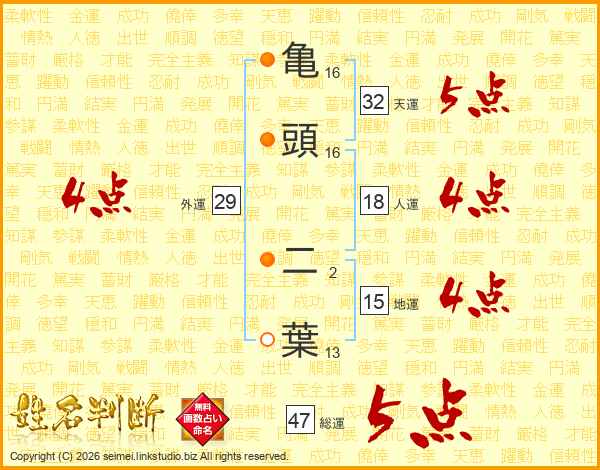 亀頭二葉さんの総運は47画の5点!