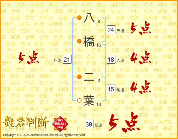 八橋二葉さんの総運は39画の5点!