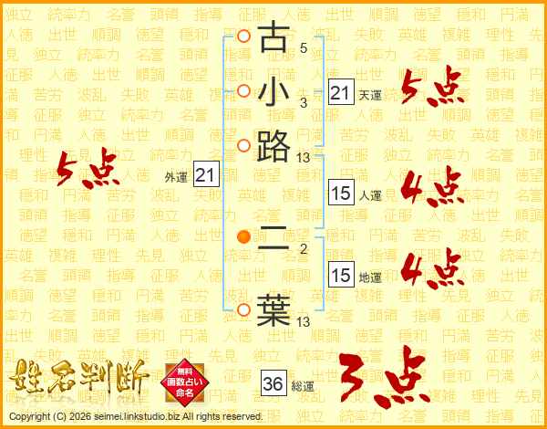 古小路二葉さんの外運は21画の5点!