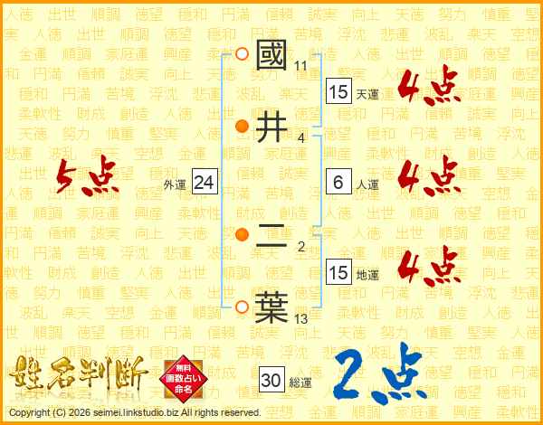 國(11画)井(4画) 二(2画)葉(13画)