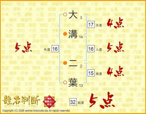 大溝二葉さんの総運は32画の5点!