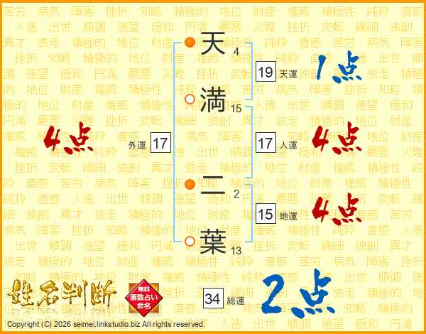 天満二葉さんの外運は17画の4点!