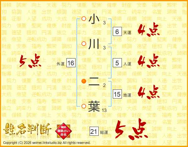 小川二葉さんの総運は21画の5点!