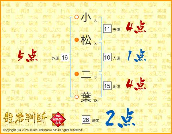 小松二葉さんの総運は26画の2点!