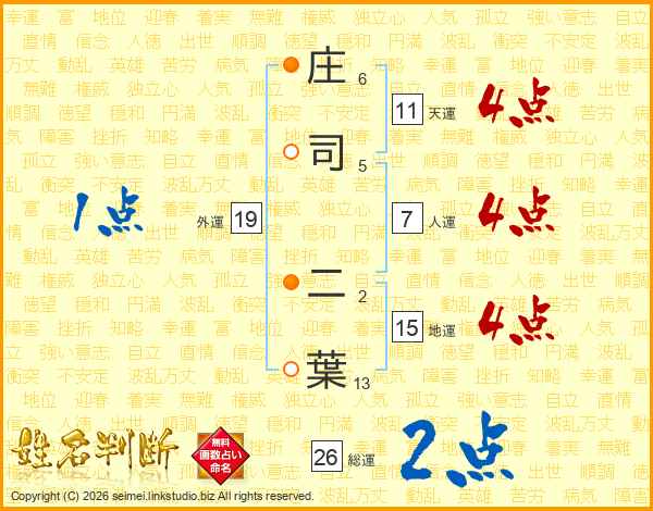 庄司二葉さんの総運は26画の2点!