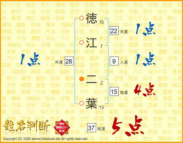 徳江二葉さんの総運は37画の5点!