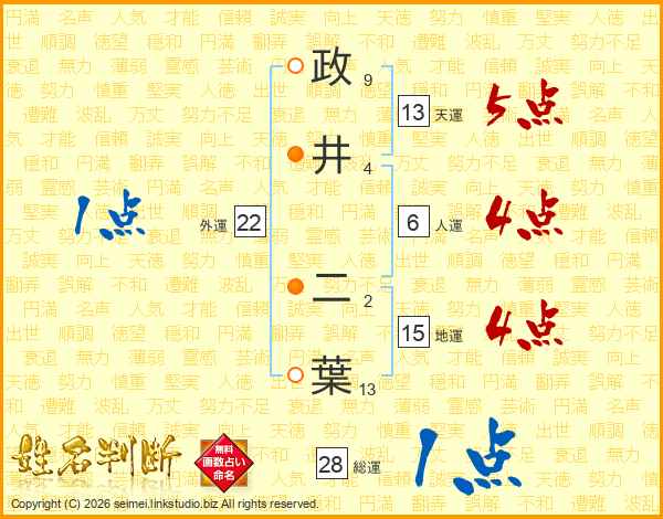政井二葉さんの天運は13画の5点!