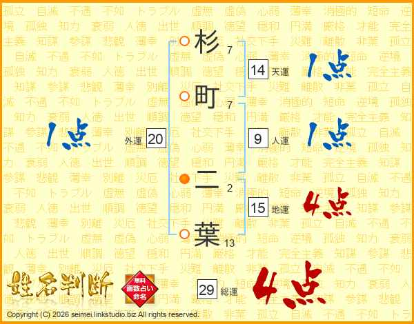 杉町二葉さんの総運は29画の4点!