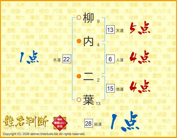 柳内二葉さんの総運は28画の1点!