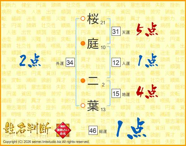 桜庭二葉さんの総運は46画の1点!