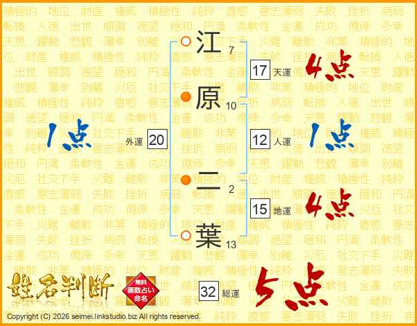 江原二葉さんの総運は32画の5点!