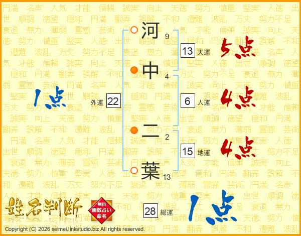 河中二葉さんの総運は28画の1点!