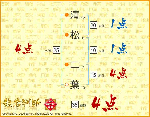 清(12画)松(8画) 二(2画)葉(13画)