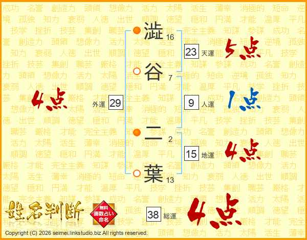 澁谷二葉さんの総運は38画の4点!