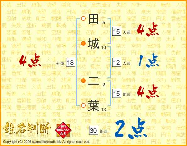 田城二葉さんの天運は15画の4点!
