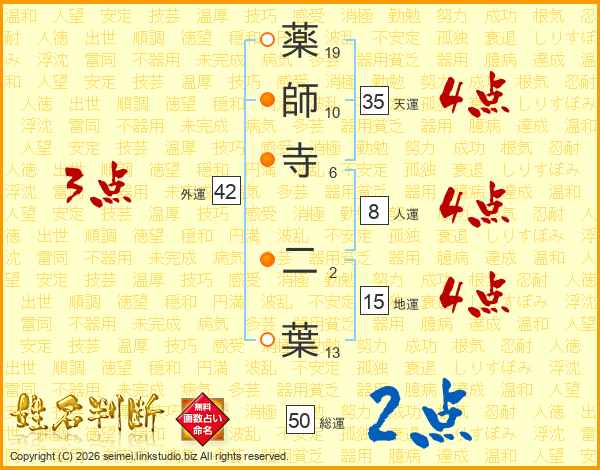 薬師寺二葉さんの総運は50画の2点!