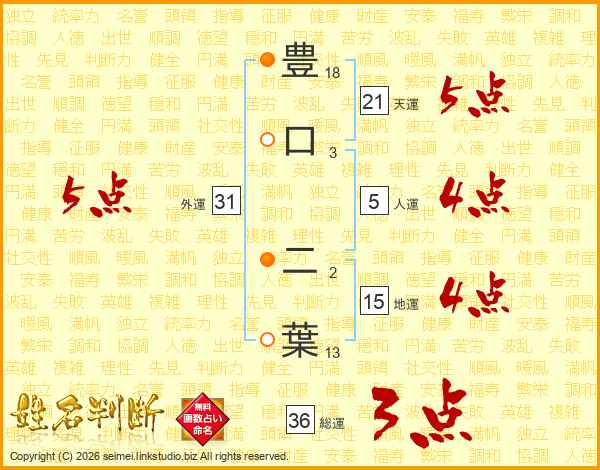 豊口二葉さんの外運は31画の5点!
