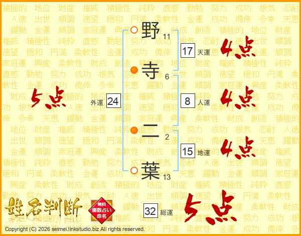 野寺二葉さんの総運は32画の5点!