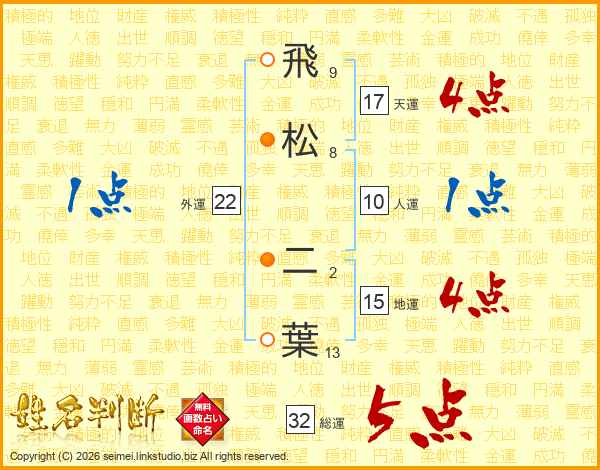 飛松二葉さんの総運は32画の5点!